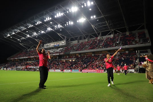 2022年8月27日(土)広島戦2年連続の来場。まだまだ暑さが残る夏の夜でしたが、暑さを吹き飛ばすほどのパフォーマンスを披露いただきました。今回はピッチレベルでのパフォーマンスを実施。