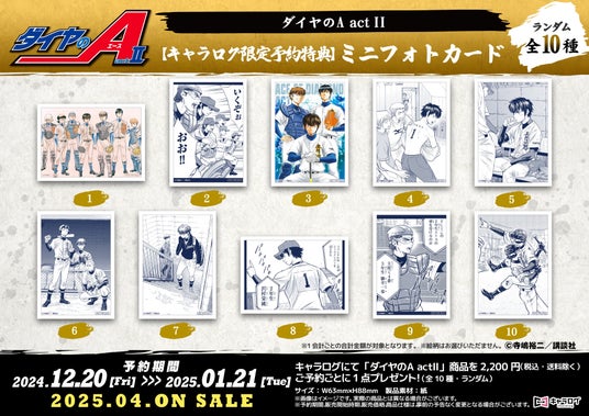 「キャラログ」にて、「ダイヤのA actII」商品を2,200円(税込・送料除く)ご予約ごとに、ミニフォトカード(全10種・ランダム)を1点プレゼント!