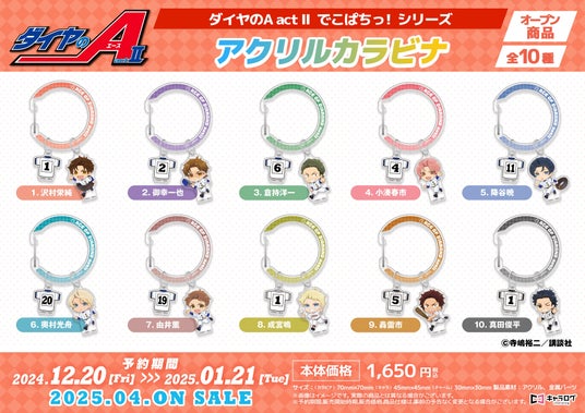 株式会社ディ・テクノ(本社:東京都港区 代表取締役社長:市原 高明)は、2024年12月20日(金)12:00よりダイヤのA act IIオリジナルグッズの予約受付を開始いたしました。