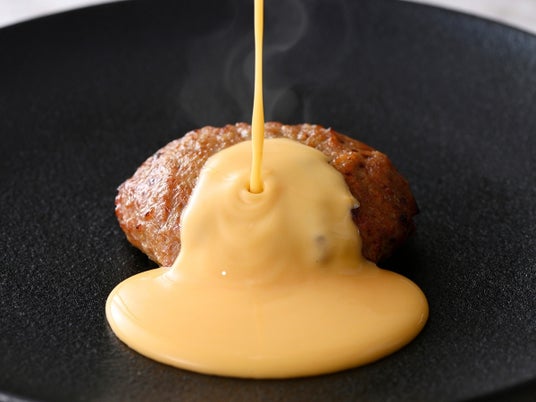 ジューシーで旨味たっぷりの肉汁と、12種類ブレンドした濃厚なチーズが溢れる、現在ご提供中のチーズインハンバーグに、爽やかな酸味とマイルドな味わいの『チーズソース』を上からたっぷりと!