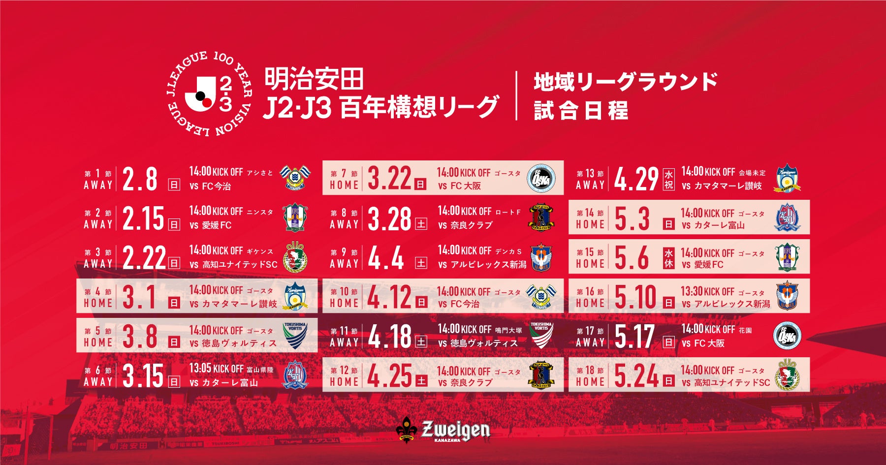 【ツエーゲン金沢】百年構想リーグのホームゲーム会場決定・日程決定のお知らせ