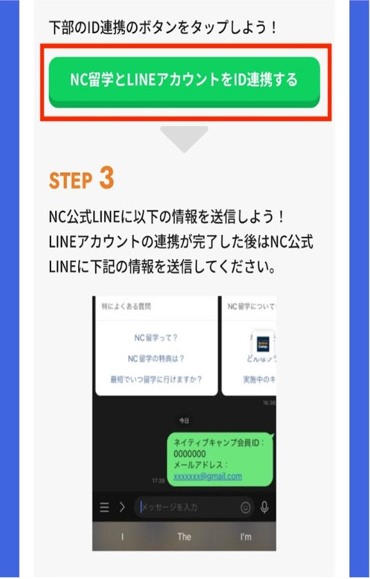 「NC留学とLINEアカウントをID連携する」をタップ