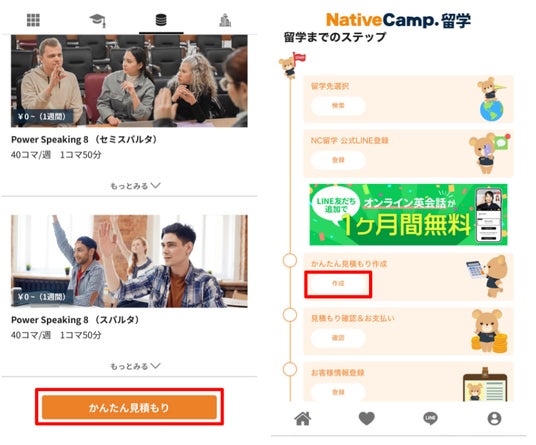 ネイティブキャンプ留学に見積もり申請をしてください。
