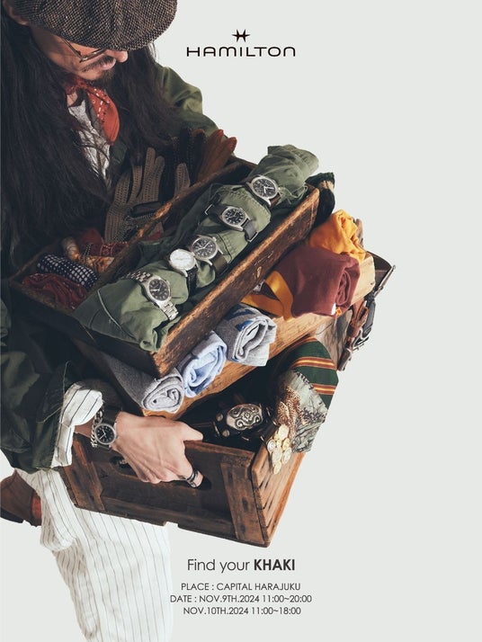 ファッションディレクターの金子恵治氏、NEATデザイナーの西野大士氏、キャプテンサンシャイン デザイナー 児島晋輔氏もこのコラボレーションに賛同。「カーキ」とのスタイリングを念頭にそれぞれの視点でセレクトした私物のヴィンテージクロースの販売にも注目です。ハミルトンのアドベンチャーウォッチ「カーキ」シリーズの様々な現行ラインナップをアメカジの切り口からの楽しむことができるイベントは、期間限定での開催です。