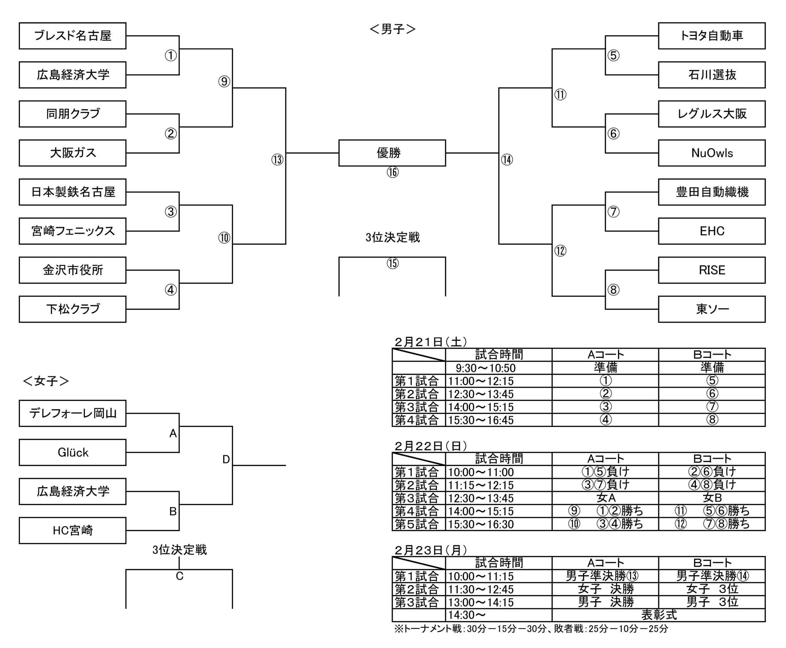 男子16、女子4チームが参加し、23日(月・祝)にかけてトーナメントでタイトルを争います(男子は敗者戦も組まれています)。ぜひ、ご注目ください。