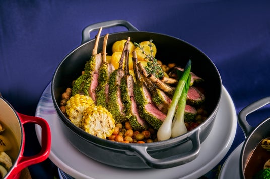 仔羊のペルシヤード香草パン粉(ペルシヤード)をまぶして焼き上げた仔羊の料理。やわらかな仔羊の肉と、よく効いたパセリやにんにくなどの香草の香りが食欲をそそります。