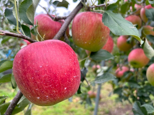 赤く艶やかに実るりんごは、味が濃くシャキッとした食感が特長で、日本の中でも有数のりんごの名産地として知られています。