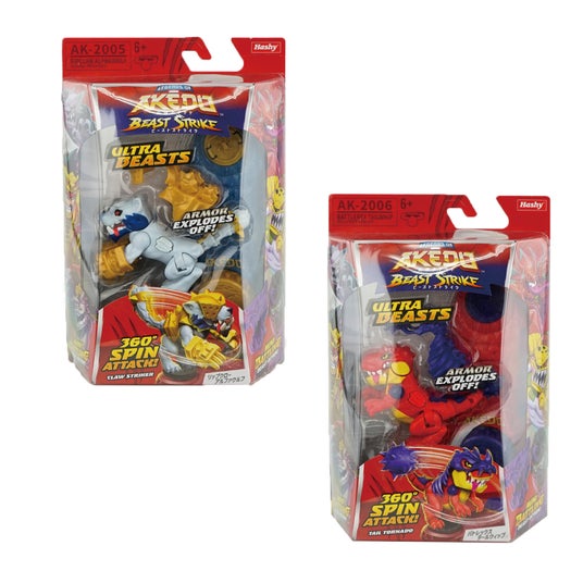 日本のアーケードゲームから着想を得た、奥深いゲーム性とスピード感が魅力のバトルトイ!ウルトラビーストは、相手の攻撃を防御するダブルストライクアーマーと、360度自由に回転するスピン式コントローラーで強力な一撃を放つことができる!ワイルドでド派手なバトルを楽しもう!(販売価格:各 税込1,980円)
