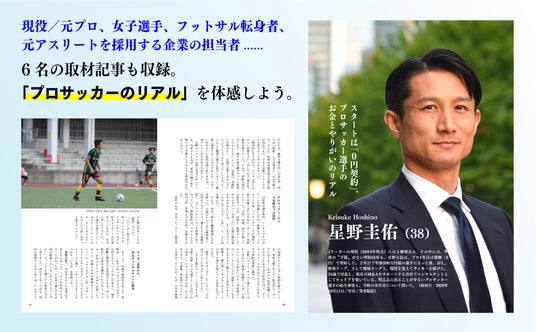 各章末には、現役/元プロ、女子選手、フットサル転身者、さらには元アスリートを採用する企業の担当者に深く取材をした特別記事も収録。生活のために別の仕事をしながらプレーした日々や、ひとつの夢を終わらせ別の道に進む決断の瞬間、思いもよらぬ縁から次の道がひらけたエピソードなど、プロサッカーのリアルを体感できます。