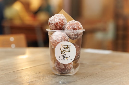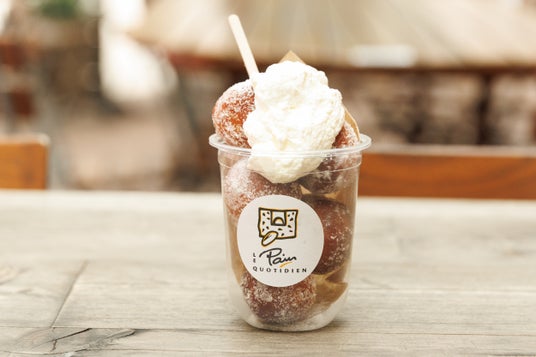 食べ歩きにも便利な一口サイズのドーナツは、全て店内で手作り。ベルギーの伝統的なレシピをベースに何度も試作を重ねて完成させました。一晩かけて低温でゆっくり発酵させた生地は、小麦の風味を存分に楽しめます。揚げ油には、ピュアオリーブオイルを使用し、ふんわり軽やかに仕上げました。最後にオーガニックシュガーをたっぷりとまぶし、ザクザク食感もお楽しみいただけます。