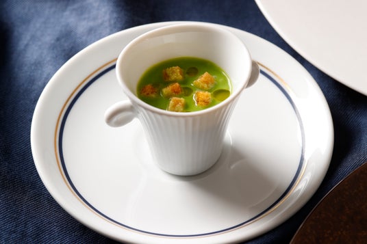 冷たいグリーンピースのスープとリコッタチーズ ミント風味