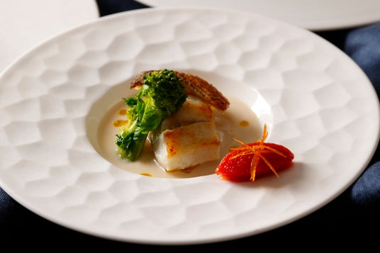 本日の白身魚のポワレ アサリ風味のホワイトアスパラガスヴルーテ
