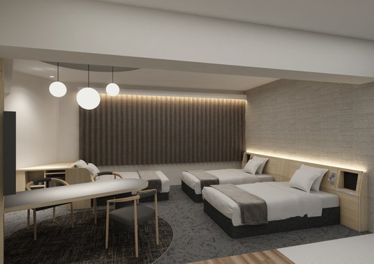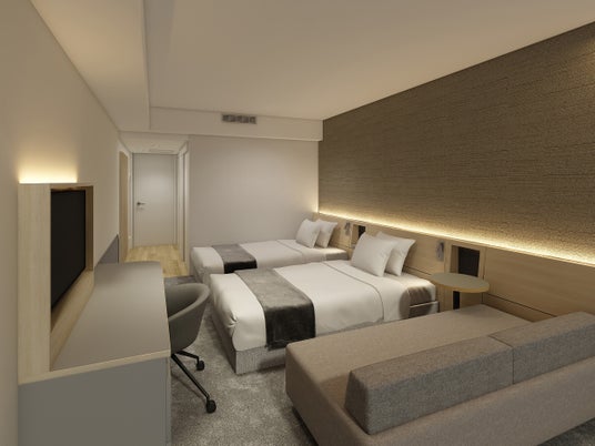 当ホテルでは、2024年12月中旬の完成を目指して客室リニューアルを進めており、新たに「ビジネススタイルクイーン」「スタイルツイン」「スタイルトリプル」が誕生します。お一人様からカップル、お子様連れのファミリーまで、さまざまな目的や幅広い年齢層の滞在スタイルに応じた利用が可能です。「いつも ずっと 心地よい」というホテルコンセプトに合わせて、グレーを基調とした、シンプルで落ち着いたデザインを用い、快適で心地よい空間づくりを目指します。