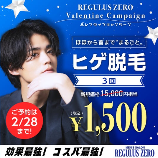 メンズフェイシャル・脱毛サロン「REGULUSZERO(レグルスゼロ)」を全国8店舗で展開する株式会社リンリン(本社:愛知県名古屋市、代表取締役社長:泊 剛史)は、バレンタインキャンペーンとして、4つのキャンペーンを同時に実施する。
