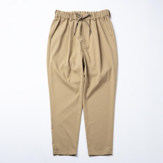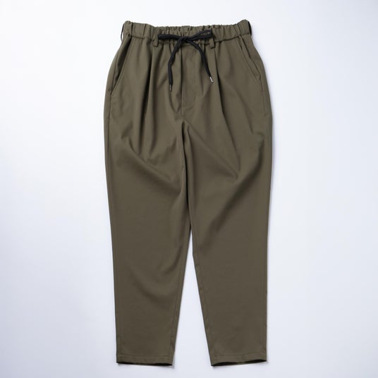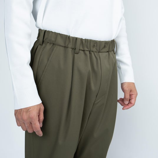 特徴:自社オリジナル素材「ultimex」を使用した、ゆったりとしたテーパードシルエットが特徴のワンタックイージーパンツ。ワンタック入りのデザインで、リラックス感がありつつも、上品な印象を演出します。ウエスト部分は、内側・外側どちらでも結べるドローコードと柔らかなウエストゴム仕様で、快適な穿き心地にこだわりました。丈感はやや短めで足元すっきり。ビジネスシーンからキレイめなコーディネートまで、幅広く愛用できる一枚です。