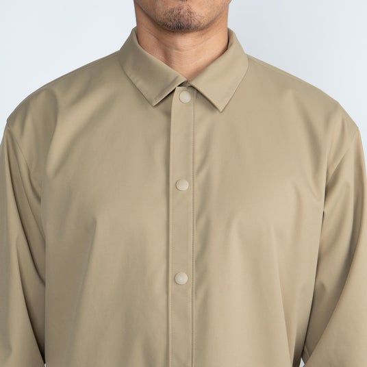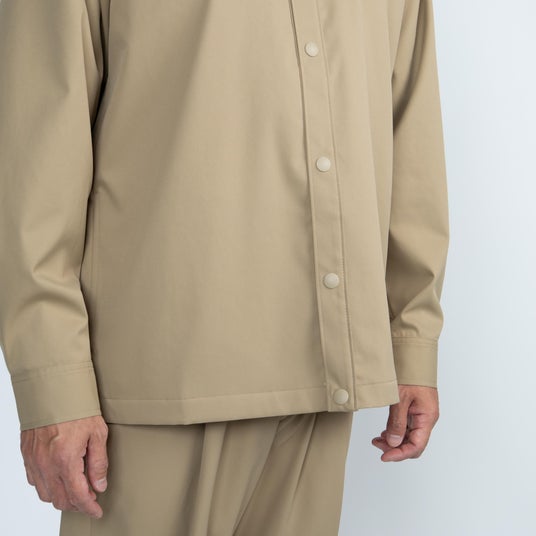 特徴:リラックス感のあるボックスシルエットが特徴のシャツブルゾン。速乾・撥水・ストレッチ・防シワ・耐久性などの機能を備える自社オリジナル素材「ultimex」を使用。シンプルなデザインながら、体のラインを拾いにくく、ビジネスからキレイめカジュアルまで様々なコーディネートをお楽しみいただけます。両サイドにポケット付きで、スマートフォンや小物も収納可能。着脱がしやすいドットボタンを採用。シワになりにくく、アイロン要らずで美しいシルエットをキープします。