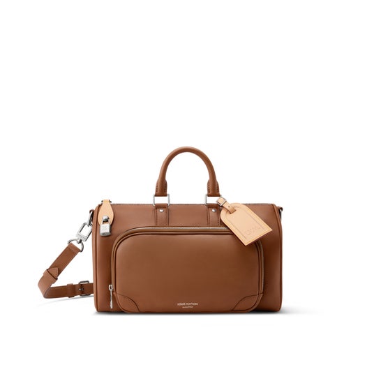 軽くドラム加工された非常に柔らかいカーフレザーで施された「キーポル・カーゴ バンドリエール 35」。実用性に優れたファスナー式フロントポケットが特徴です。ネームタグとファスナー引き手はメゾンの定番のヌメ革で仕上げました。ジャカードのライニングが洗練された印象をプラス。手に馴染むトップハンドルと取外しや調節が可能なストラップにより、持ち運びも自在です。