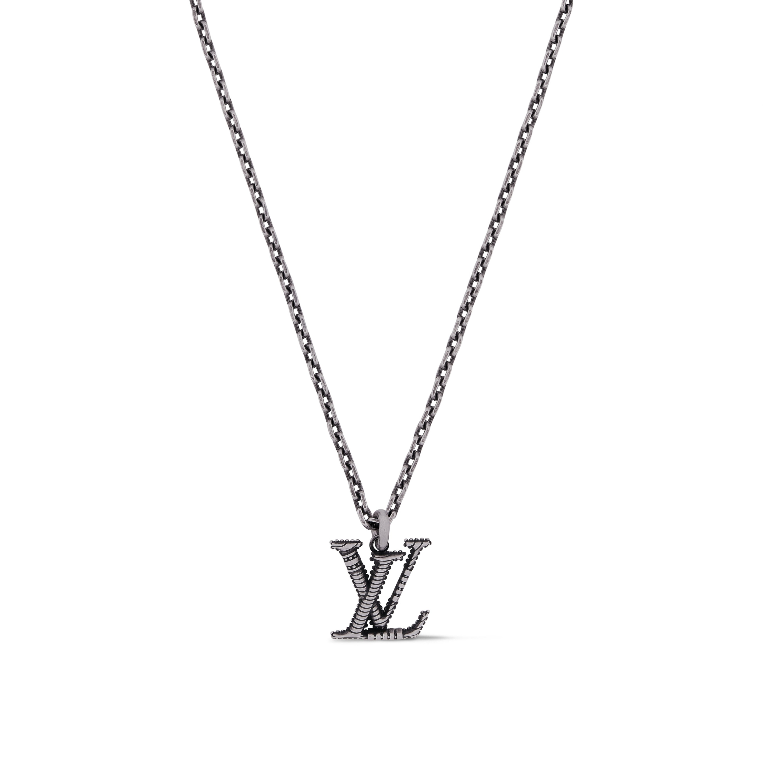 気品溢れるデザインが余韻を残す「ペンダント・LV ウィスパー」。ねじりがあしらわれたチェーンから、ギョーシェ加工を施したような新たな表情をまとったLV イニシャルが揺れます。インドのクラフツマンシップの歴史を讃えるリボンのようなスタイルで、控えめでありながらも圧倒的な魅力を放つ一品に仕上げました。