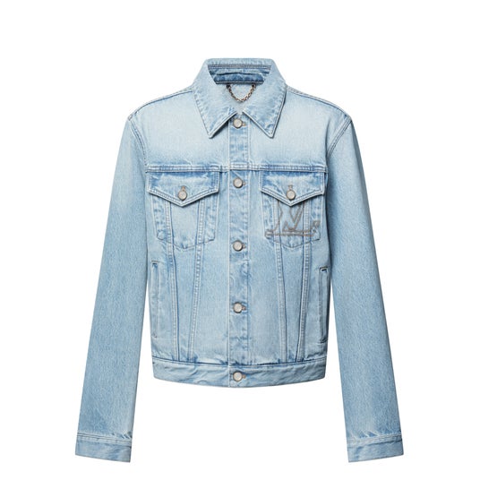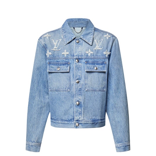 ルイ・ヴィトンのサヴォアフェール(匠の技)が際立つ、ワードローブに欠かせないクラシカルなトラッカージャケット。ストーンウォッシュ加工した特別な日本製デニムに、タバコカラーのトップステッチがあしらわれています。胸ポケットにはLV シグネチャーの刺繍を施し、背面に配したヌバックのLV イニシャルのパッチとパール調のボタンで仕上げました。普段の装いとミックス & マッチが楽しめるエフォートレスな1着です。