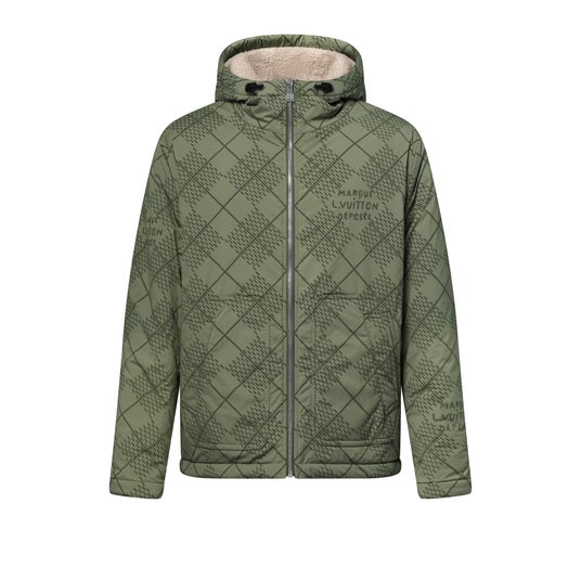 冬にぴったりの現代的なリバーシブルデザインに再解釈したウインドブレーカー。外側のテクニカルファブリックには、「Marque L.Vuitton Deposee signatures」シグネチャーを組み入れた、グラフィカルなグリーンのダミエ・アーガイルチェックで飾りました。裏返すと、胸元に繊細な手描き風の「Louis Vuitton」シグネチャーがあしらわれた、肌ざりのよいクリーム色のフリースに。寒い日や雨の日にも着用できる、季節の変わり目にぴったりの万能なデザインです。