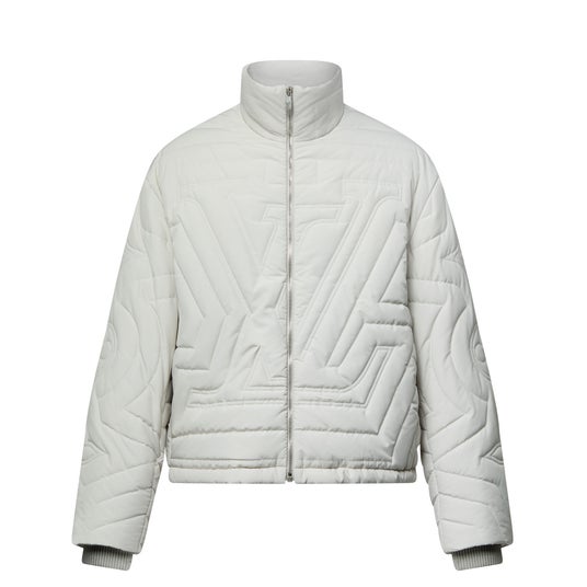 今コレクションの街の犬と飼い主にインスパイアされたキルティングブルゾン。テクニカルリップストップファブリックを使用した、秋にペットとの散歩を楽しむのに最適な1着です。ライトストーンカラーのパッド入りのシルエットに、LV イニシャルとモノグラム・フラワーをオーバーサイズのトップステッチであしらい、季節の変わり目の重ね着にぴったりのアウターにトレンディなひねりを加えました。