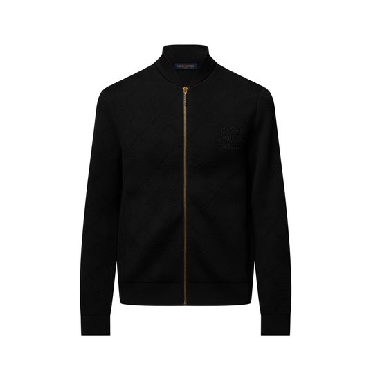 ウール混紡素材を使用したブルゾン。立体感を生み出すキルティングが特徴のモノクロームのニットでコレクションのダミエ・アーガイルにエレガントなひねりを加えました。胸元に光沢感のある糸で刺繍した「Marque L.Vuitton Deposee」シグネチャーやパール調のファスナー引き手など、洗練されたディテールが魅力です。同シリーズのパンツと合わせれば、カジュアルながら上品なスタイルに。