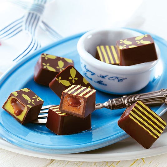 なめらかなキャラメルソースをガナッシュの中に入れ、甘さ控えめのチョコレートに閉じ込めた、2種類のプラリネショコラ。キャラメルや「ゲランドの塩」、ピスタチオの風味がチョコレートととけ合う、贅沢でリッチな味わいをお楽しみください。
