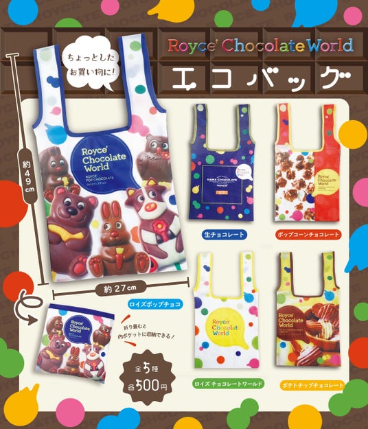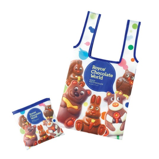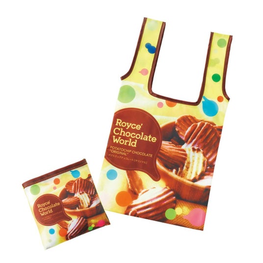 「ロイズポップチョコ」や「ポテトチップチョコレート」をデザインしたカラフルなエコバッグ。折り畳むとコンパクトに収納ができ、持ち運びにも便利です。