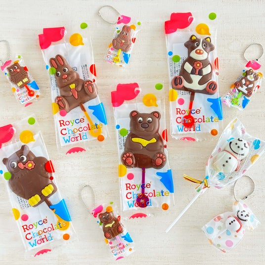ロイズ チョコレートワールドで人気の「ロイズポップチョコ」と「ロイズ雪だるまチョコ」のかわいいミニチュアチャーム。北海道のお土産としてチョコレートと一緒にプレゼントするのもおすすめです。