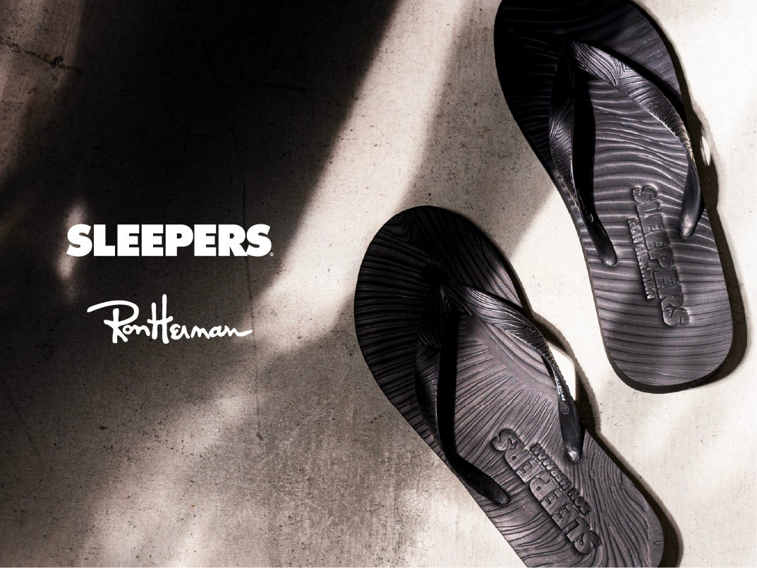 カラーは幅広いスタイルに合わせやすいブラックの1色展開。ソール上部には「SLEEPERS」と「Ron Herman」のダブルネーム刻印を施し、特別感をさりげなく表現しました。ビーチはもちろん、街にも自然に溶け込むバランスへと仕上げています。