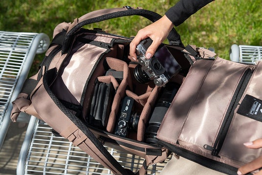 カメラ機材用インナーバッグの「カメラキューブ」と、バッグの外側に荷物を取り付けられるようにする「アクセサリーストラップス」が同梱されたフォトグラフィーバンドルのみの展開です。15Lはディバイダーが最初から組み込まれています。