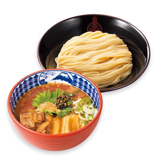 モチモチとした食感の特製麺が、濃厚なつけダレと絶妙に絡みつき食べ応えも抜群です。
