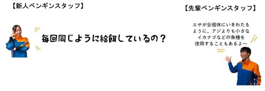 ペンギンのエサの種類や一日に与える量、個体ごとのエサの食べ方の違いなどを紹介します。