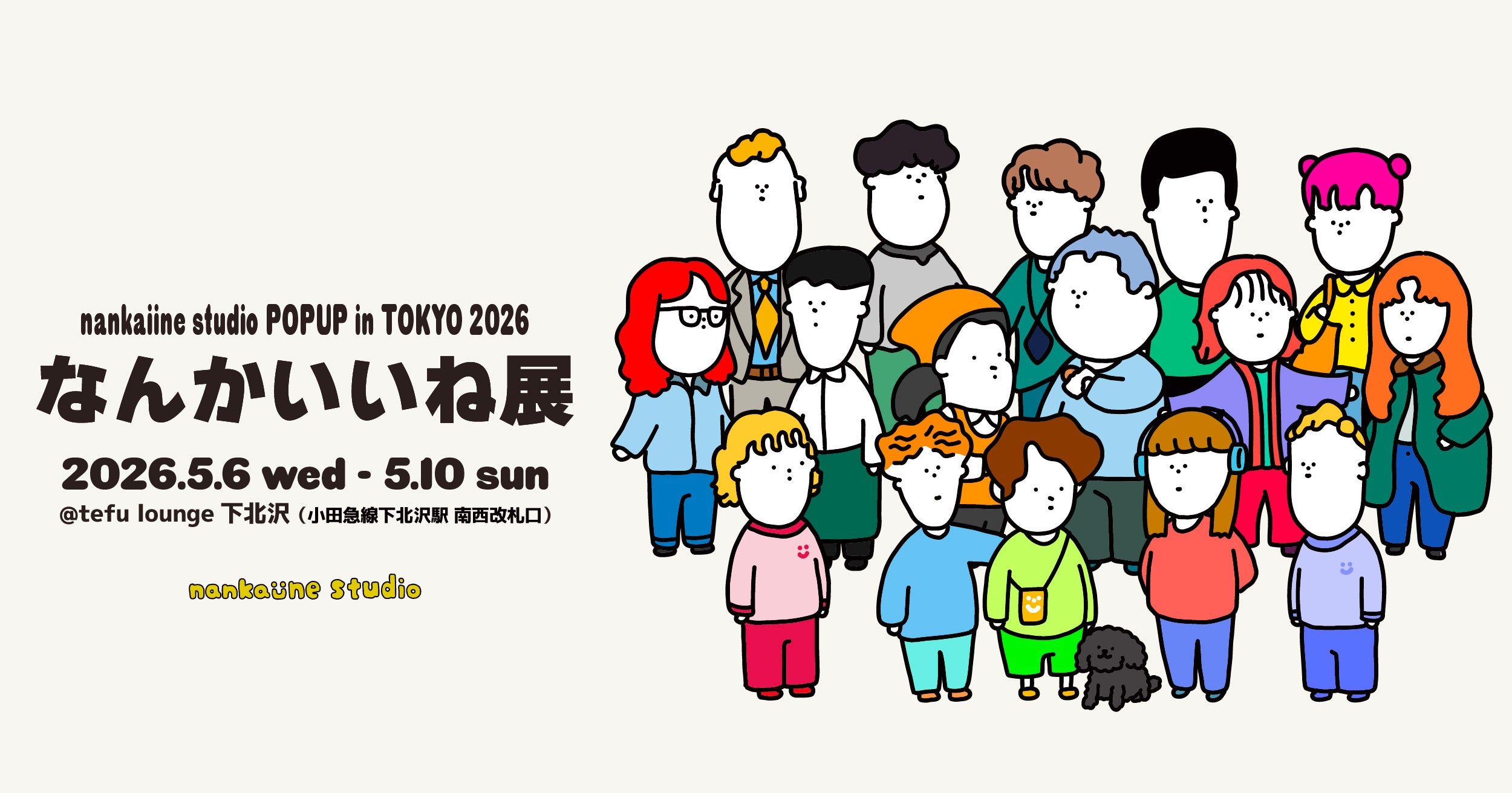 2026年5月6日(水)から5月10日(日)までの5日間、小田急線下北沢駅すぐの『tefu lounge 下北沢』にて、期間限定ポップアップ「なんかいいね展 -nankaiine studio POPUP STORE in TOKYO 2026」を開催。