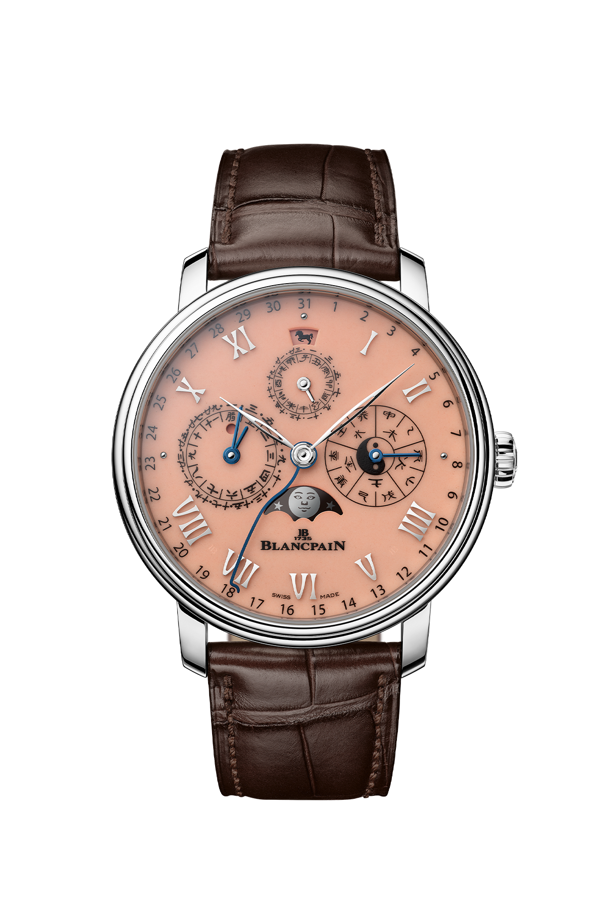 ヴィルレ トラディショナル チャイニーズ カレンダー 2026年午年モデル <ブランパン>は、ヴィルレ トラディショナル チャイニーズ カレンダー 2026年午年モデルを発表します。 文明が時を知ろうとするとき、人々は天を見上げます。中国以外にこの関係を繊細に追求した文化は数多くありません。その伝統的な暦は、太陽のリズム、月の周期、宇宙観に基づく象徴性を1つの生きた体系に結びつけています。こうした時間の概念を機械構造に置き換えることは、単なる技術的な課題ではなく、知的な探求でもあります。2026年の丙午の到来に合わせ、ブランパンは再び、時計製造において最も高度な技術を要し、ごく限られた少数しか極められない領域に挑みます。マニュファクチュールが中国暦をテーマに手掛ける15作目のモデルは、カレンダー機構に関する時計技術の頂点に立つメゾンの地位を改めて確立するものです。 ヴィルレ トラディショナル チャイニーズ カレンダー 2026年午年モデルは、ブランパンのサヴォアフェールを力強く証明します。 2012年当時、ブランパンのムーブメント設計者たちは、464個の部品で構成されるこのムーブメントの開発に5年を費やしました。その複雑さは、パーペチュアルカレンダーをはるかに超え、ミニッツリピーターに匹敵するものです。この複雑な構造は、ブランパンのル・ブラッシュにあるグランドコンプリケーション工房で製作されています。まさにカレンダーの複雑機構におけるブランパンの技術の高さを象徴しています。カレンダー機構はブランパンのキャリバー3638によって駆動し、3つの香箱により7日間のパワーリザーブを実現します。45.2MMのプラチナ製ケースに、サーモンローズ グラン・フー・エナメルダイヤルとホワイトゴールド製の数字を組み合わせ、シリコン製ヒゲゼンマイを搭載しています。 2026年2月17日の丙午の到来を記念して制作された50本限定モデルは、新たな視覚的表現として、ブランパン初の試みとなるサーモンローズ グラン・フー・エナメルダイヤルを披露します。 ヴィルレ トラディショナル チャイニーズ カレンダーは、ヴィレレ コレクションを象徴する控えめで洗練された美学を体現するクラシックな特徴を忠実に受け継いでいます。丸みをもつダブルステップ・ケース、グラン・フー・エナメルダイヤル、ゴールドのアップリケで構成されたインデックス、焼成工程前に転写されたエナメルペイントの表示、そして主要な針はくり抜かれた葉のような形状をしています。さらに、グレゴリオ暦の日付を示すブルースティール製針は伝統的なサーペント針の形状に仕上げられ、18世紀の時計製造の伝統を想起させます。 カレンダーを備えた時計製造の最高峰 中国では、伝統的に2つの並行するシステムによって時間が計測されてきました。1つは太陽暦に基づくグレゴリオ暦、もう1つは太陽と月の両方の動きに左右される太陰太陽暦である伝統的な中国暦です。グレゴリオ暦とは異なり、中国暦は太陰月を中心に構成されています。1年は12か月または13か月になり、各月は29日または30日、閏月は不規則な間隔で現れます。この時間的枠組みの上に十二支の周期、五行、そして陰陽という2つの力が重なり合い、これらが一体となって広大で相互に連関する60年の周期を形成しています。 中国暦の神秘性は4つの専用針、十二支の表示窓、閏月の表示窓によって表現されています。これらを総合することで、中国の時間(120分単位)、五行と陰陽の60年周期、十二支の12年周期、中国の暦における日・月・閏月が定められます。 グレゴリオ暦の日付は伝統的なサーペント針が指し示します。 同様に、ムーンフェイズはクラシックスタイルに基づき6時位置の窓で表示されます。 ブランパンが初めてトラディショナルチャイニーズ カレンダーを発表したのは2012年。その際、古代から現代まで受け継がれる中国暦を表示しつつ、グレゴリオ暦の日付とムーンフェイズを統合した唯一の時計という世界初の偉業を成し遂げました。参照できる歴史的機構がなかったため、すべての解決 策は基本原理から考案されなければなりませんでした。 時を読む、東洋と西洋 その並外れた複雑さにもかかわらず、表示は驚くほど読みやすく保たれています。 ・ 12時位置:中国の伝統的な2時間刻みの時刻と干支 ・ 3時位置:五行と陰陽 ・ 6時位置:ムーンフェイズ、1983年からのブランパンの象徴 ・ 9時位置:中国太陰暦の日付と月(閏月を含む) ・ ダイヤル周囲:グレゴリオ暦の日付、ブルーのサーペント針による表示 カレンダー設定システム 機械式カレンダームーブメントは、表示を設定およびリセットするためのコレクターが必要です。ブランパンの独創的な手法により、これらのコレクターはラグの下に控えめに配置され、時計を着用した際にはまったく目立たず、簡単に操作が可能です。ヴィルレ トラディショナル チャイニーズ カレンダーは、ラグの下に特許を取得した5つのコレクタ