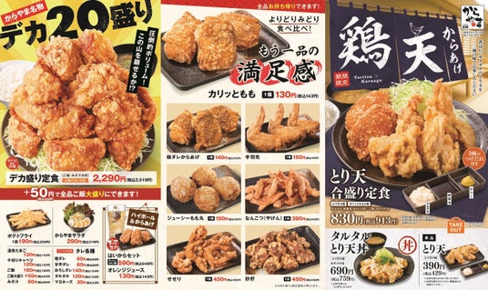 2023年に、からあげ専門店本気の合盛りとして期間限定で販売した「とり天合盛り定食」は、販売初日から多くのお客さまに選ばれた商品であり、2024年には「とり天倍盛り合盛り定食」も加わりからやまの期間限定メニュー年間販売数第1位の人気商品となりました。