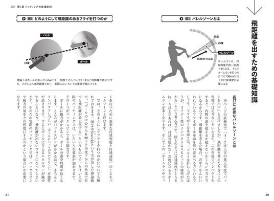まずはバッティングの原理原則を知るところから。たとえば、下記は「飛距離を出すための基礎知識」についてのページになります。