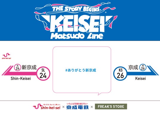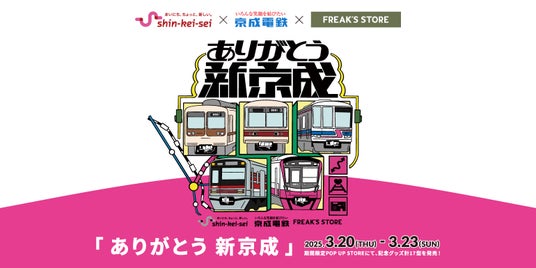 株式会社デイトナ・インターナショナル(本社 : 東京都渋谷区 / 代表取締役社長執行役員CEO 佐々木 聡〈ささき あきら〉)が運営するセレクトショップ【FREAK’S STORE(フリークス ストア)】は、沿線地域の魅力向上及び活性化を目指したプロジェクト『京成フリーク』の第4弾「ありがとう 新京成」のPOP UP STOREを新京成線・新津田沼駅にて、3月20日(木‣祝)~3月23日(日)の4日間限定で開催します。POP UP STOREでは記念グッズの販売他、税込み¥4,000以上で1回チャレンジでき非売品のステッカーがもらえる「ありがとう 新京成」ガチャマシーンや、SNS総フォロワー15万人の旅YouTuber「しおねる」の一日店長イベントを実施します。