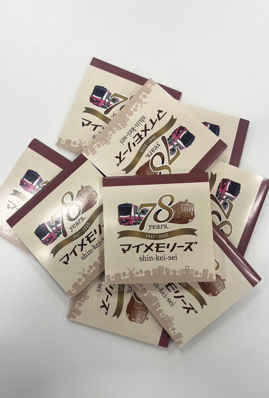 さらに!!記念グッズをお買い上げのお客様かつDaytona Parkの会員登録をしていただいた方には 、3月上旬まで運行していた新京成78年間の思い出を装飾した列車「マイメモリーズトレイン」のメインビジュアルをあしらった非売品のメモ帳をプレゼント!