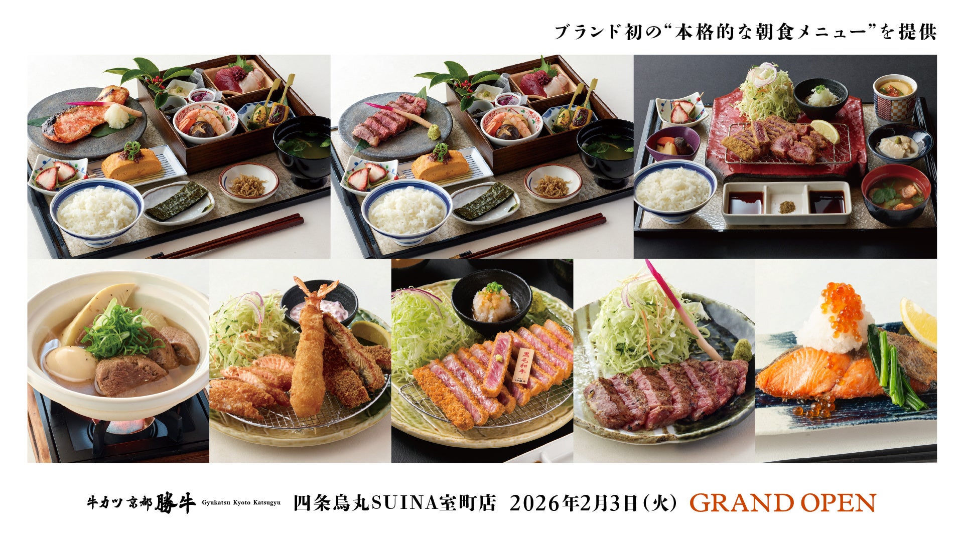 牛カツ専門店「牛カツ京都勝牛」を展開する株式会社京都勝牛(本社:京都府京都市)は、2026年2月3日(火)、四条烏丸エリア初出店となる「牛カツ京都勝牛 四条烏丸SUINA室町店」をグランドオープンいたします。朝を急がないという贅沢を―― 注目の朝食市場に「体験型朝食」という新提案