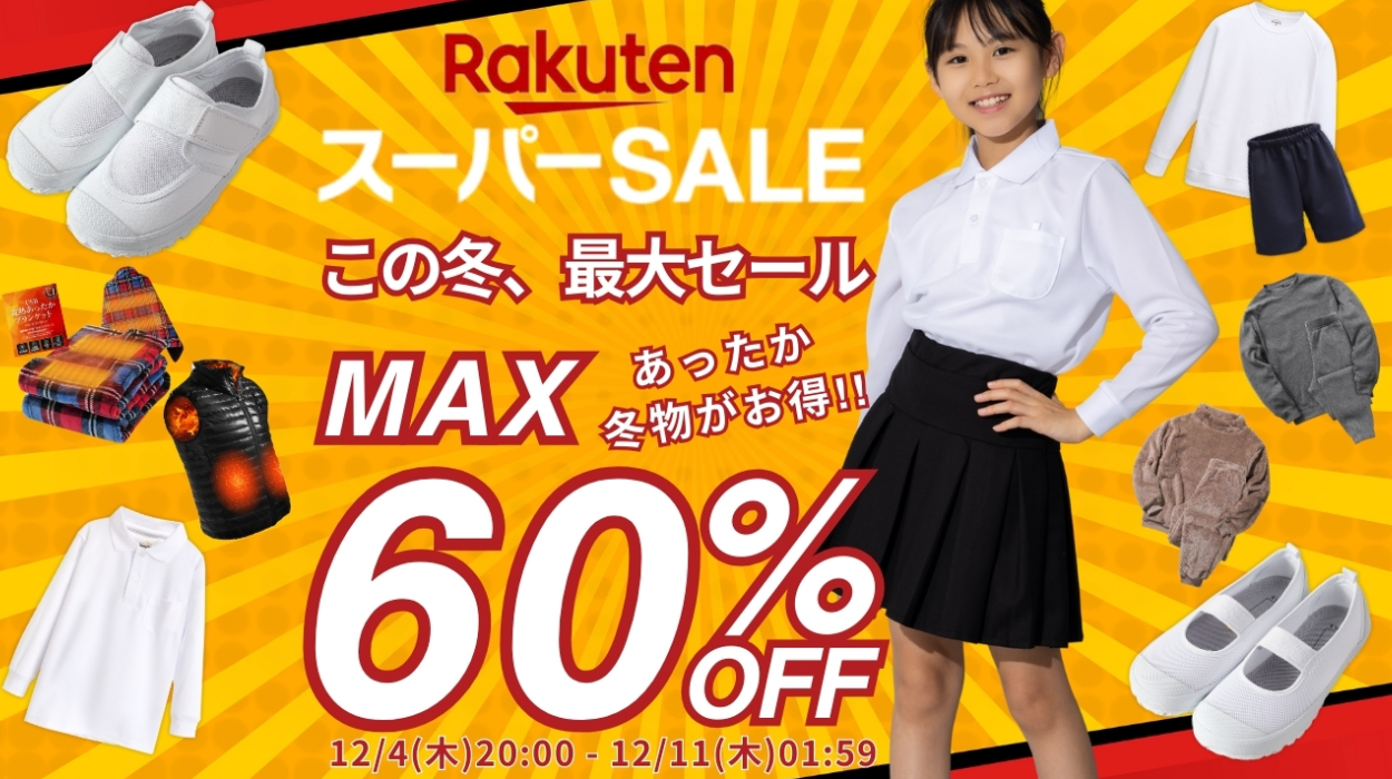 【今年最後の楽天スーパーSALE いよいよスタート!】最大60%OFF!楽天スーパーSALE開催!冬ものや来年度の準備を先取り!学生商品は勿論、ルームウェア・生活雑貨まで、値引き&クーポンで超お得に!