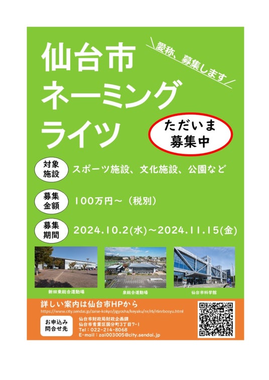 【仙台市】令和6年度提案型施設命名権者の募集を行います