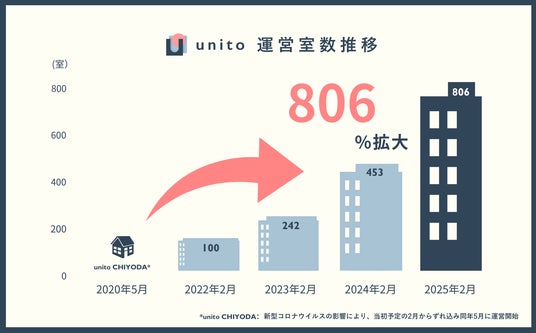 2025年2月現在、運営物件数は113棟806室に拡大し、unitoの会員数は約7.7万人を突破。不動産ディベロッパー・政府関連団体との協業を展開し、運営物件数を107棟804室に拡大する成長を遂げました。そこで5年の節目に、これまでの当社の歩みをインフォグラフィックスで振り返ります。