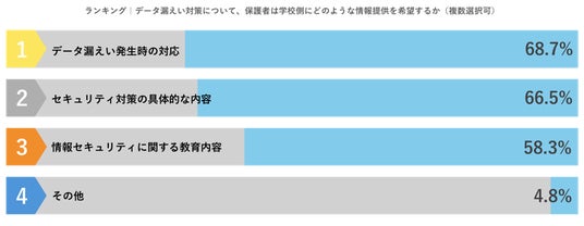 約70%近くの保護者が「データ漏えい発生時の対応」に関する情報提供を