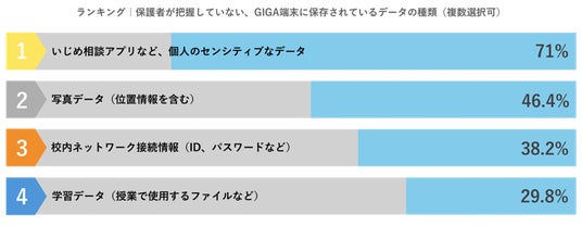 データ漏洩時のリスクが高いと考えられる、いじめアプリなどのセンシティブなデータが入っている事を知る保護者は全体30%未満にとどまることが明らかに。