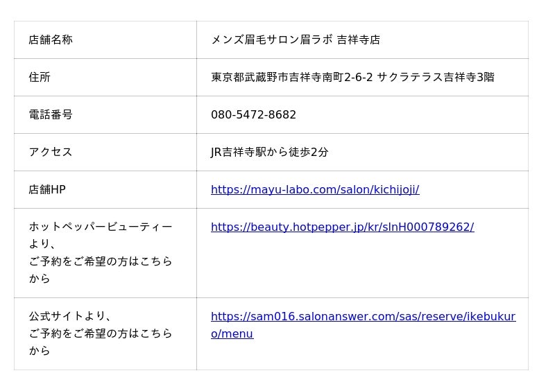 メンズ眉毛サロン 眉ラボ 吉祥寺店 の営業時間は以下の通りです。