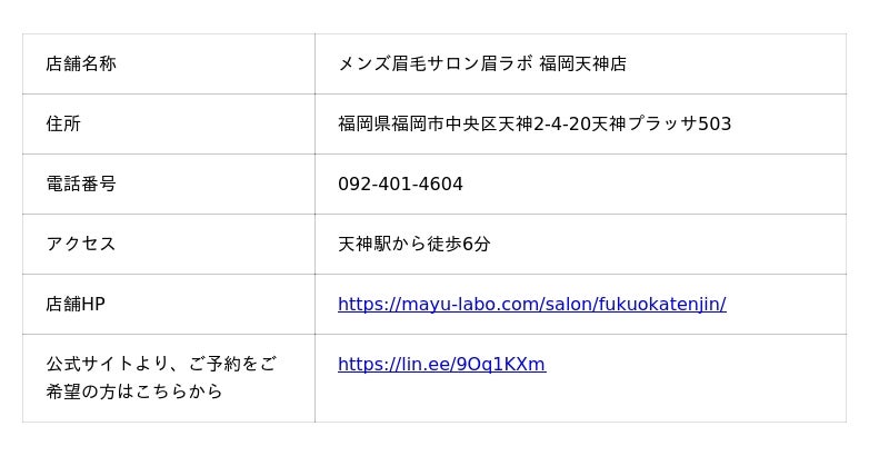 【全国21店舗目 天神駅徒歩6分】メンズ眉毛サロン 眉ラボ 福岡天神店 2026年4月17日(金) NEW OPEN