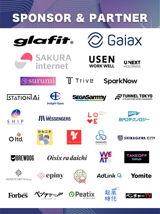 【イベント スポンサー】glafit株式会社、株式会社ガイアックス、さくらインターネット株式会社、株式会社USEN WORK WELL、株式会社スルミ、株式会社Trive、株式会社SparkNow、STATION Ai株式会社、株式会社インサイトアイズ、BPOテクノロジー株式会社、株式会社ロッテベンチャーズ・ジャパン、合同会社O、Koru-workers株式会社、オイシックス・ラ・大地株式会社、ブリュードッグ・カンパニー・ジャパン株式会社、DYM MESSENGERS、Japan Angel Fund株式会社