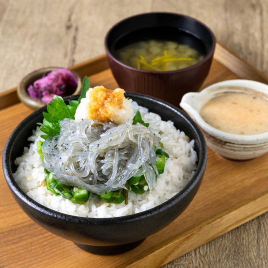 黒十ヤ自慢の自然薯とろろ、さらに温泉卵との組み合わせで、食べ応えと爽やかなスパイシーさとまろやかな味わいが渾然一体となった満足度たっぷりな丼に仕上がりました。 もちろん、唐揚げグランプリ金賞も受賞した黒十ヤ自慢の「旨味唐揚げ 自然薯とろろ丼定食」や、人気の「生しらすのネバトロ 自然薯とろろ丼定食」などもオススメです。