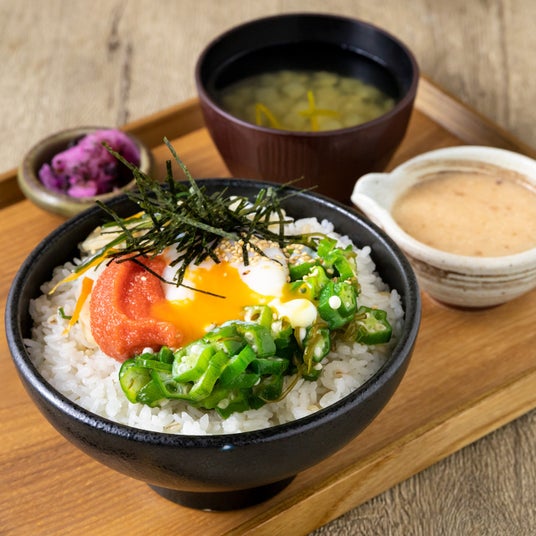 明太子と半熟たまご、 オクラの自然薯とろろ丼定食 ■自然薯とろろ丼専門店 黒十ヤ 阪急西宮ガーデンズ店 稀少な自然薯を使ったとろろで味わう丼を、気軽に楽しめるお店。